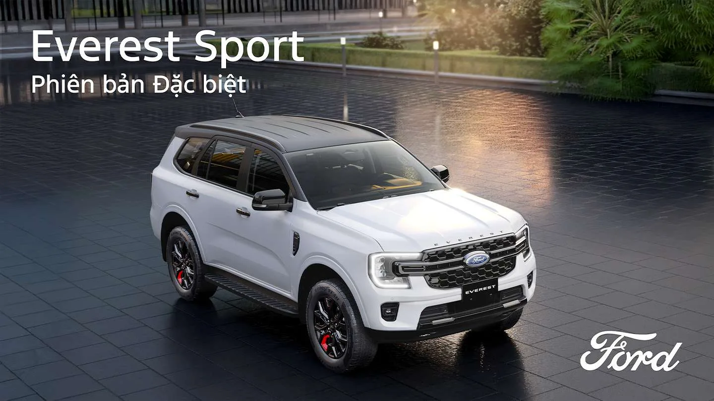 Everest Sport Special Edition, phong cách và cá tính cho dòng SUV cỡ D. Phiên bản này nổi bật với ngoại thất màu trắng, kết hợp các chi tiết sơn đen tương phản như mặt ca-lăng, trần xe